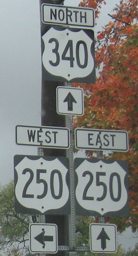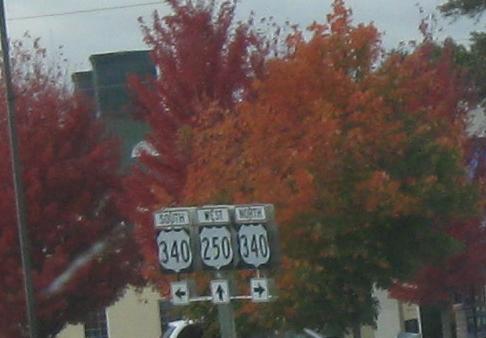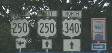 Looking over my shoulder SB, where it seems like you're not on US 340 at all (or even on US 250!). But no, this is 340 SB, and to the right is US 250 EB.