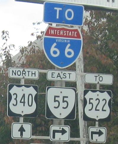 Shields shrink in Front Royal, where US 340 shies away from the spotlight and hooks onto VA 55 and US 522 (see big links below).