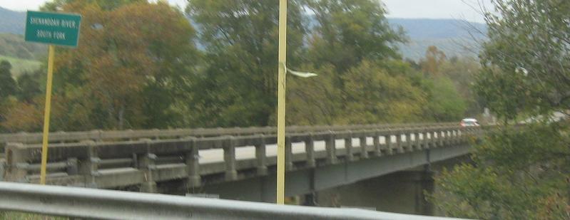 Confusingly, these photos look north along the South River while US 340 goes east-west. Anyway, in 2013, the US 250 South River bridge was being reconstructed (2nd photo), so all traffic was detoured onto US 340.