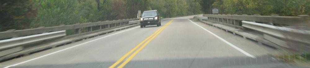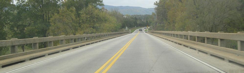 Skipping the US 211 concurrency, which you can visit via the big link below, here's a treat as I cross Sandbank Hollow. Not only is there a stylish, tall railroad viaduct to the east, but the original US 340 bridge has been left in place, Florida-style. I think it's extra stylish that the original county line sign remains at the old southbound "shoulder" (since the old bridge didn't have one) instead of being relocated closer to the current highway.