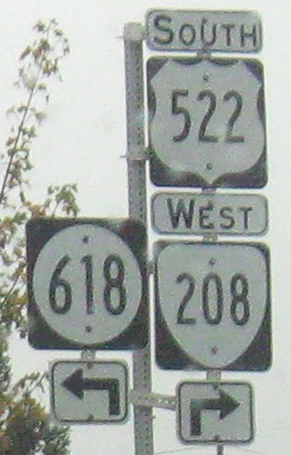 Turning nine signs into one, and then rotating it, Powhatan SR 1002 NB at the beginning of US 522, courtesy Lou Corsaro. SR 1002 comes from VA 13, which is Old Buckingham Road and begins and ends at US 60, so I have a strong suspicion 1002 used to be part of 522.