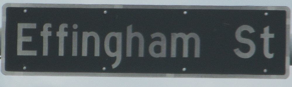 NB and SB street signs above VA 141's downtown Portsmouth turn, and an old shield on London Blvd. EB. Effingham St. continues north of the intersection unnumbered, but London Blvd. to the east gets downgraded to just a Street once it loses its state highway designation. This is the only actual turn on VA 141, but it curves back on itself to the south before ending at US 17. Meanwhile, VA 337 sneaks in and makes an inside track that's similarly hook-shaped - up Turnpike Rd. and back down Elm Ave., instead of staying on Portsmouth Blvd. and missing out on downtown.