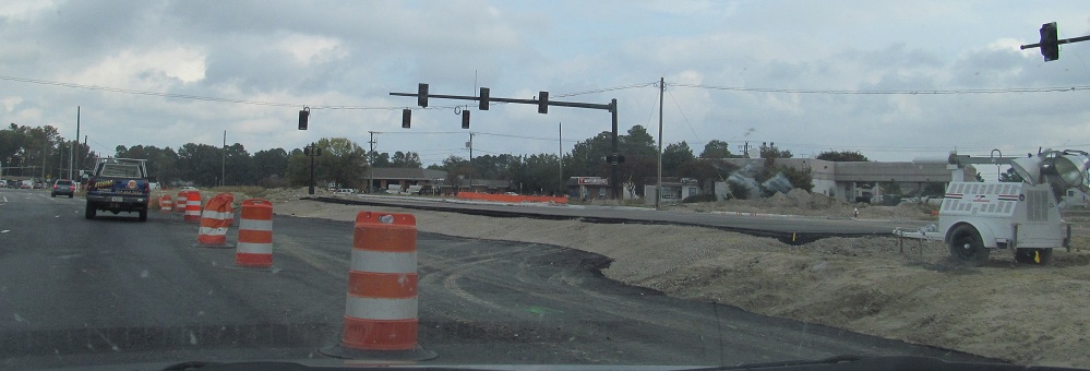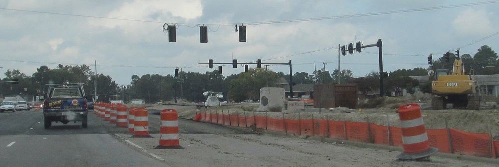 Heading northeast on the east side of Portsmouth, on Kempsville Rd. nearing Princess Anne Rd./VA 165. Intense widening is underway from a four-lane undivided road to a divided boulevard with turn lanes - and many more traffic lights.