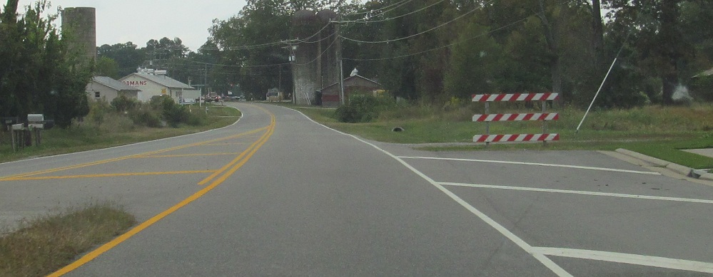 WB through some widening construction in rural Suffolk, then turning north onto Shoulders Hill Road, which looks like it's going to be raised up a Hill to about Shoulders height.