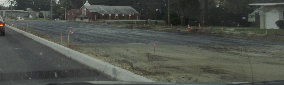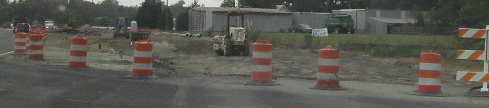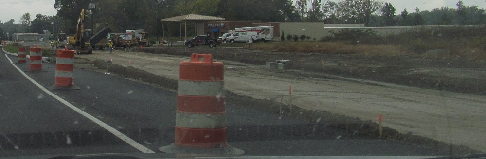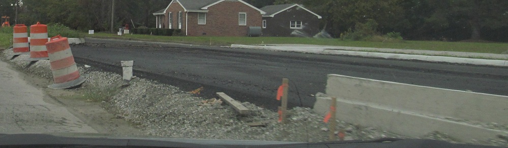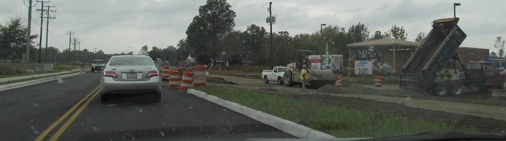 WB through some widening construction in rural Suffolk, then turning north onto Shoulders Hill Road, which looks like it's going to be raised up a Hill to about Shoulders height.