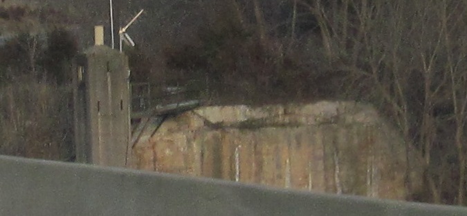 As VA 55 leaves Strasburg across the North Fork Shenandoah River, the abutment of the old bridge is visible to the south. A climate data station now sits in front of it.
