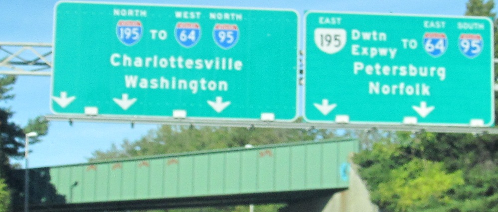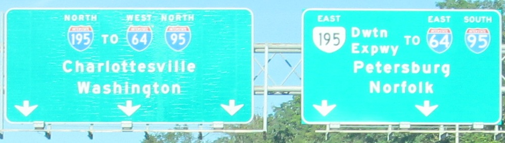 These two shields are probably half of the total for VA 146, with the other half being at the other end of the route, and that's even considering the Maplewood Ave. interchange along the freeway. VA 146 is a very short connector, more or less glorified ramps, connecting tolled VA 76 to tolled VA 195. I-195 is free, but since you're already on a toll road, there's no distinction, as if the route options are evenly weighted. VA 195 (apparently the Dowton Expressway, since this is not how one would even try to abbreviate "Downtown") is a better route, especially to I-95 SB, but it still should carry the TOLL banner. No change needs to be made to the older signs on the left, please.