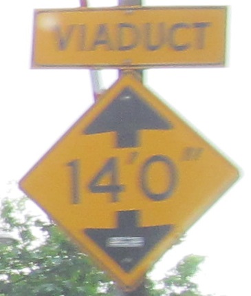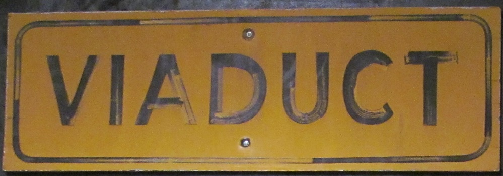 The Milepost Thirty One exhibit that was put up during construction to answer questions and fears about the project included a panel of historical relics. The white blade signs were put up along vertical elements such as light poles to indicate the undercrossing streets, more for maintenance than for wayfinding. I presume the "viaduct" sign was mounted on the side at each cross street to alert motorists to there being something overhead.