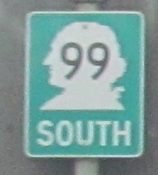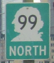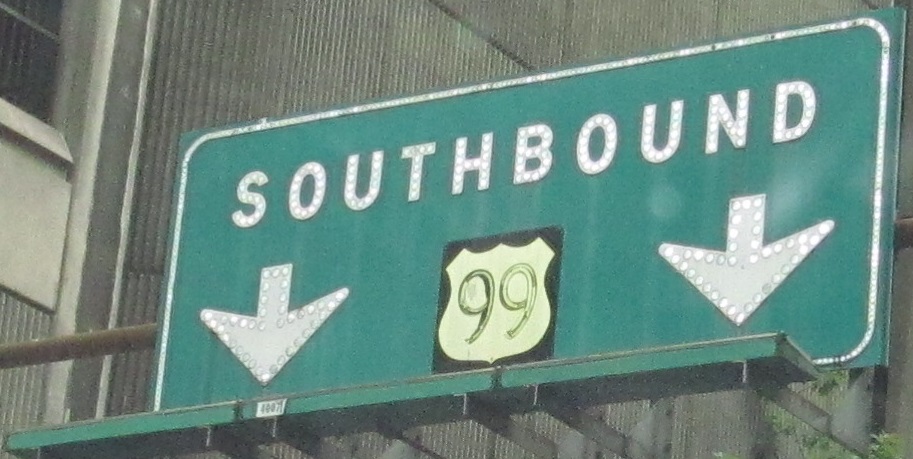Columbia Street at 1st Ave. and WA 99... no, wait... US 99! What may be the only remnant of its former glory is this downtown Seattle BGS pointing to the Alaskan Way, which survived right up until demolition of the viaduct in 2019. I've heard that, sadly, the signs were scrapped instead of preserved. That makes me angry.