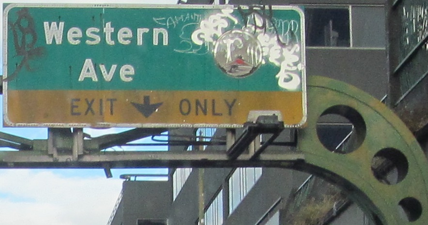 The ramp to Western Ave. passes next to and then under the viaduct. It's not an interesting viaduct, but since it's no longer a viaduct at all, you deserve this photo.