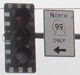 1st Ave. NB gets a new regulatory sign at Royal Brougham Way, requiring the street to the left to be North 99. (A one-piece sign should have a green background here.) Royal Brougham is a person, but I think it works better as a car.