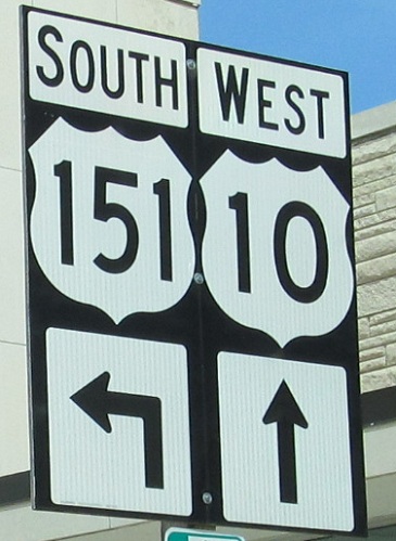 Just off the ferry in Manitowoc (also known as Carferry according to signs), US 10 gets unisigns new and old at the beginning of US 151. Old signs come with their own antitheft warnings.