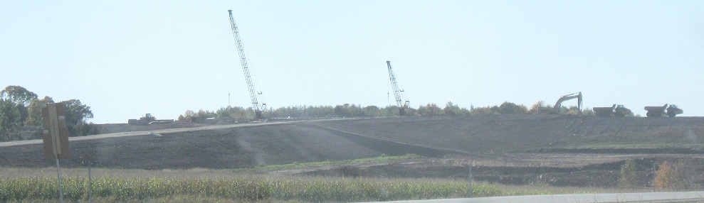 Just beyond WIS 34, the US 10 freeway comes to an abrupt temporary end, with a materials plant perched above the future freeway. I'm assuming it's for concrete and not asphalt, considering that the lanes are concrete in both directions. It's rare to construct something like that on-site, but this is a huge job. Photos continue on the construction pages linked at bottom.