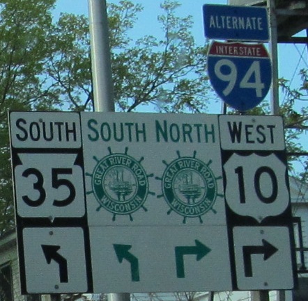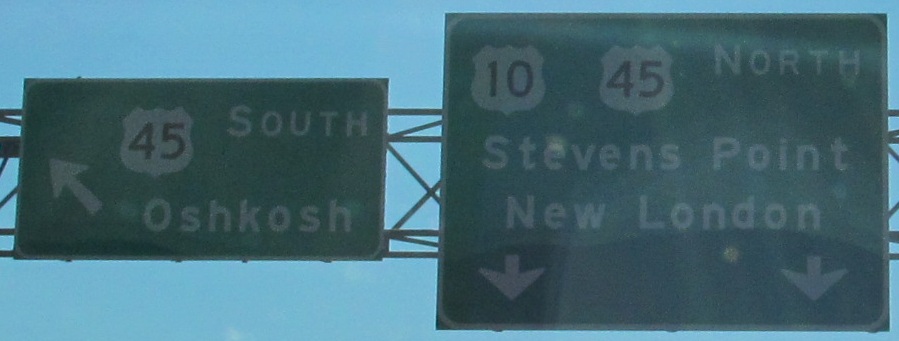 US 10 grabs onto a couple of routes and ends up in Appleton. The error in the last photo is "Miles" instead of "Mile." Subtle, but when you take 100,000 sign photos, things like this stand out.