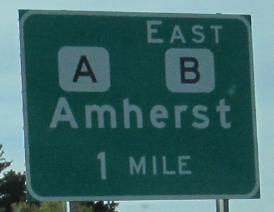 Around Amherst, starting at Otto Rd., to another North-South exit. CTH B now bypasses Amherst on US 10, hence the late addition of "East" to this sign; why bother bypassing town on a county route, though? That's the one kind of route you'd expect not to bypass something.