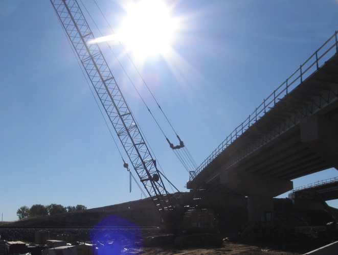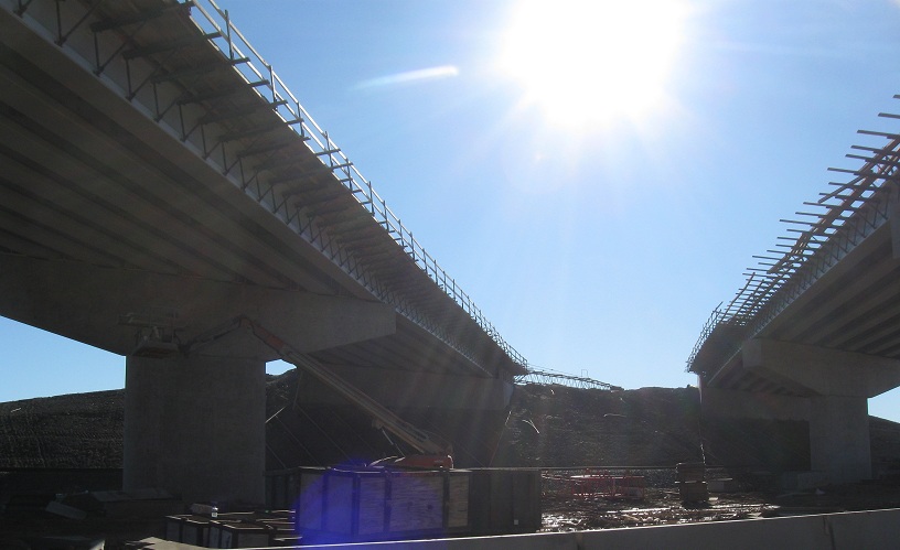 Looking back east at the new overpasses.