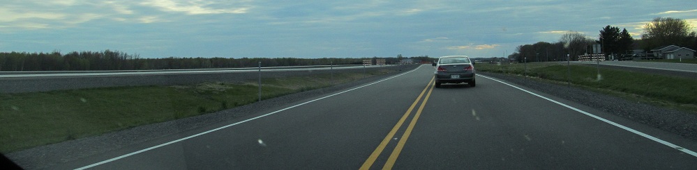 April 2012: The slip ramp is open, taking US 10 traffic onto the future WB lanes, with a look back east at the merge in the last photo. The expressway runs over the old road a few times near Hewitt, which is why traffic had to be detoured onto it during construction.
