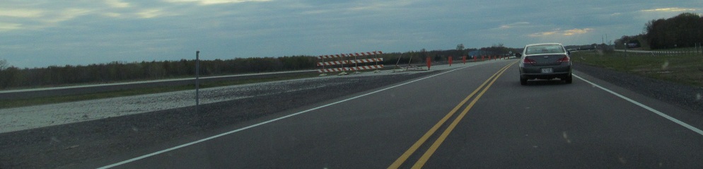 In October 2011, there was still ongoing paving work on this eastern expressway segment, but all of this (trucks and gravel piles) was gone by April 2012.