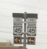 WIS 100 NB and SB, respectively, at North Ave. in Milwaukee, courtesy Doug Kerr. WIS 100 is old US 45, and thus it parallels it quite closely and even eventually joins it. With that many options, it makes sense to have arrows to tell you the best way.