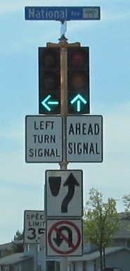 SB at and turning onto National Ave. at the southern end of the short route. Ever seen "AHEAD SIGNAL" before? Sometimes people don't realize that left turns have their own signals, but I've never heard of someone not realizing that through traffic gets a signal.