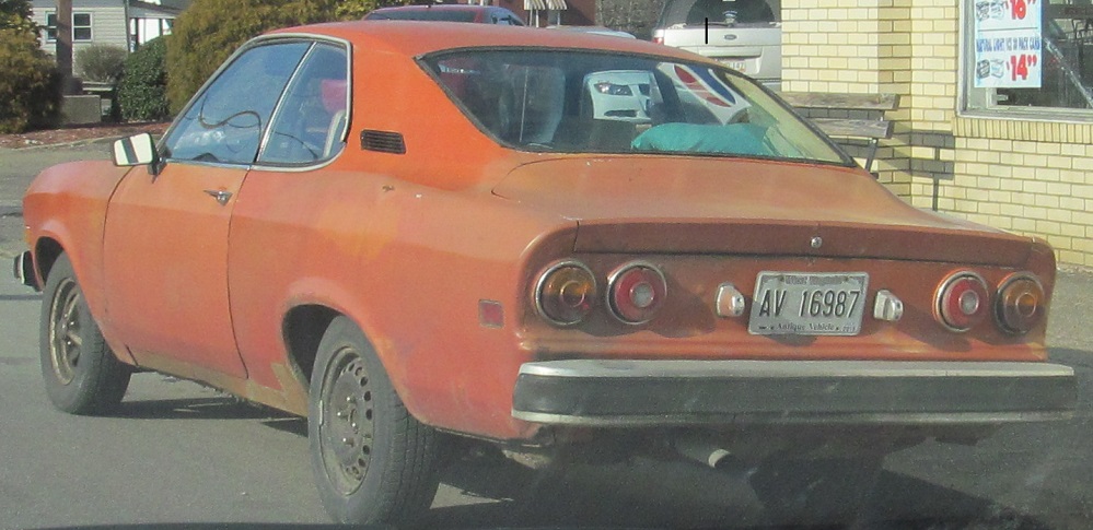 From a bridge and a cemetery to a bridge named for a cemetery, crossing Little Grave Creek into Moundsville. Once in town, I found an Opel Manta. Ask your local car enthusiast about it.