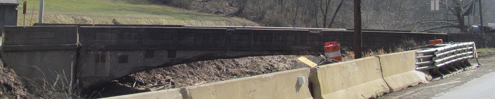 The west parapet across Parr's Run needs to be replaced. The wall in the 2nd photo holds up a cemetery. Don't want those dead people spilling out onto your road.