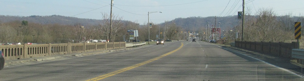 Now a part of Business US 250, this is nevertheless still the only covered bridge on the US Highway system. These photos head south, except the first one is actually on the south/east side of the bridge.