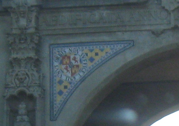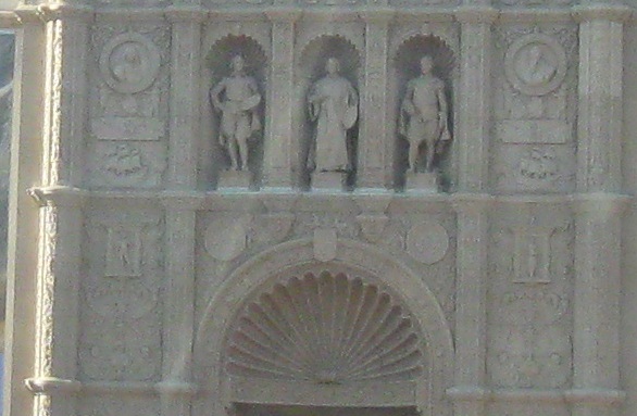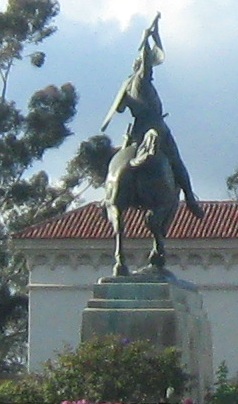What I'll call the South Gate, entering the Plaza de Panama main area on Pan American Road. The statue is of El Cid, medieval hero of Spain, and a tribute to this area having been part of Spanish Mexico before the 19th century.