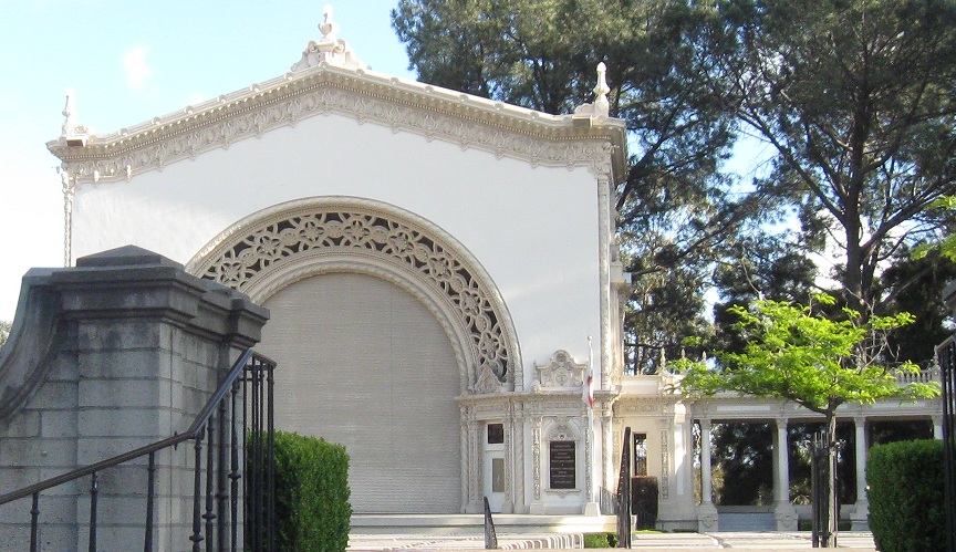 The Spreckels Organ Pavilion. These foreign tourists are contemplating the grandiosity of it all. (They're not hipsters because there are no fake glasses or knit hats.)