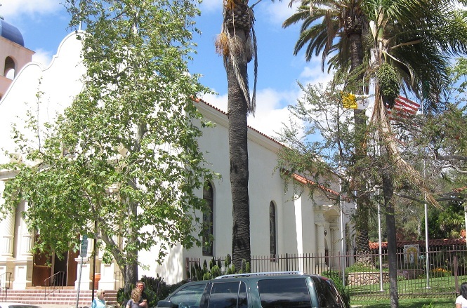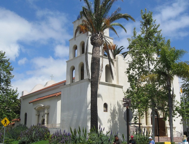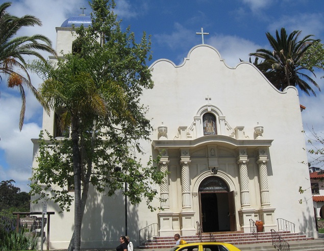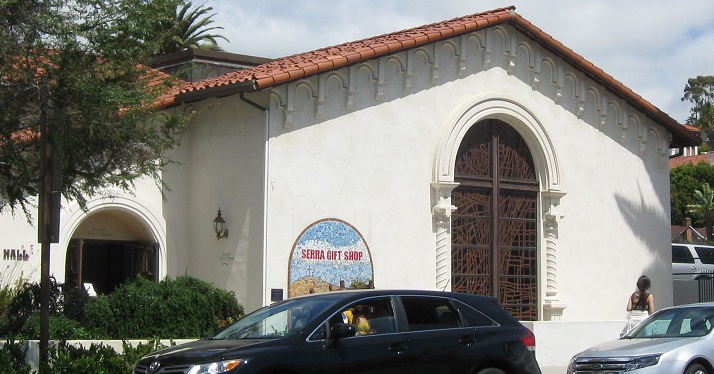 Down to the beginning of San Diego Avenue, the Church of the Immaculate Conception takes up most of the north side of the block between Twiggs and Harney Streets. Junipero Serra Hall is right next door, taking up the rest.