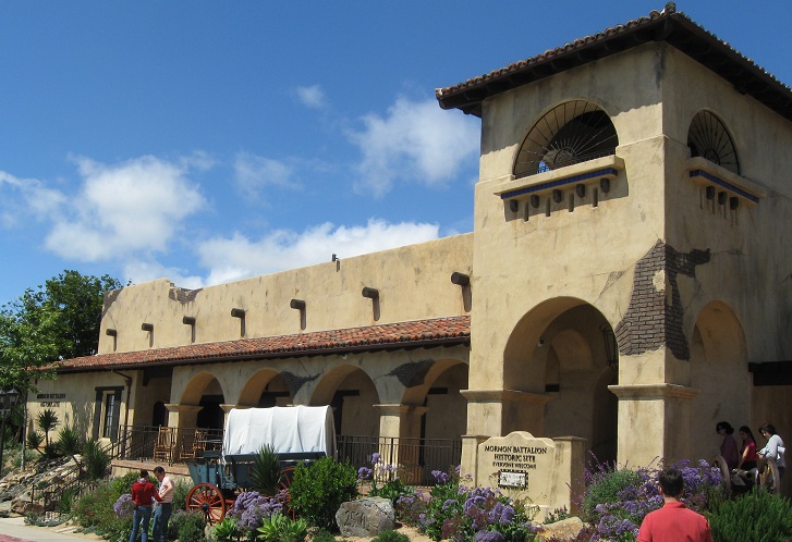The Mormon Battalion, on the north side of Juan Street, home to the only religiously based military unit in U.S. history. It fought in the Mexican-American War shortly after the advent of Mormonism and helped protect California from Mexican reconquest.