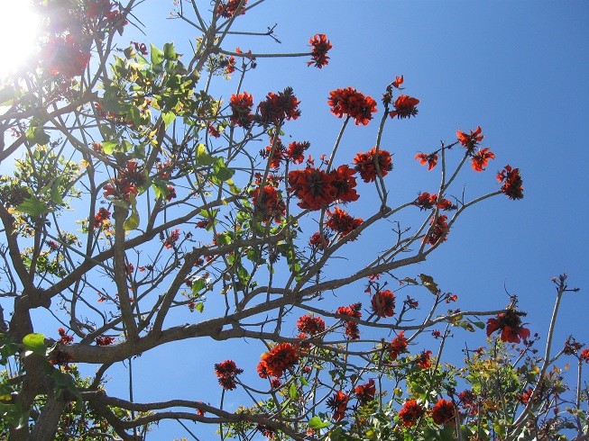 This coral tree grows at the edge of Heritage Park.