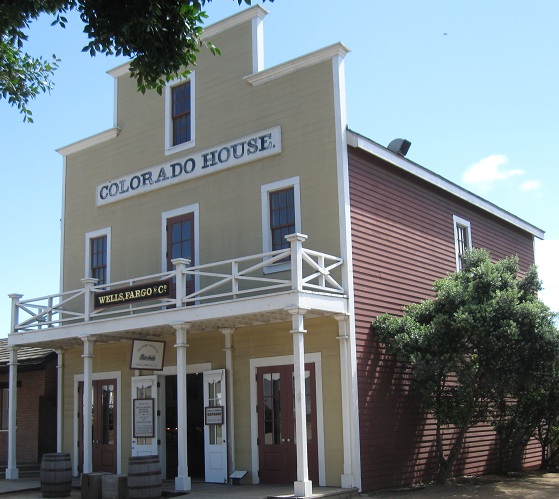 The Robinson-Rose House is at the end of San Diego Avenue. It's actually a replica, but reportedly on the foundation of the original. I have trouble believing this because that would put it directly in the path of the former main street that definitely continued northwest from here.