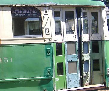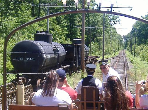 This is one of two or three cars in the rotation that take people along the restored streetcar railroad owned by the Museum (which originally operated from 1906 to 1926). It's actually a nice, long ride, so that by the end you can really appreciate modern, smooth cars and modern, smooth track.
