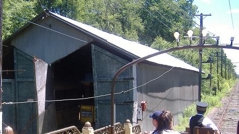 Passing a restoration barn along the way. The closeup shows you that the Museum has tacked another East Windsor destination plate onto this car.