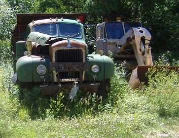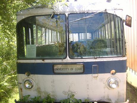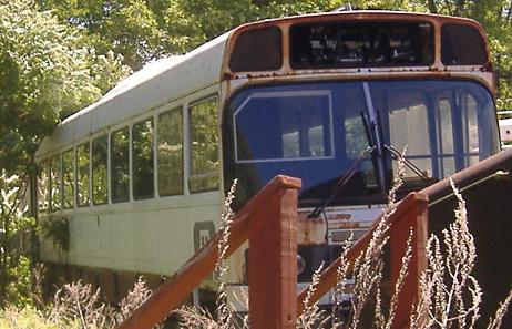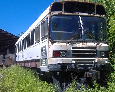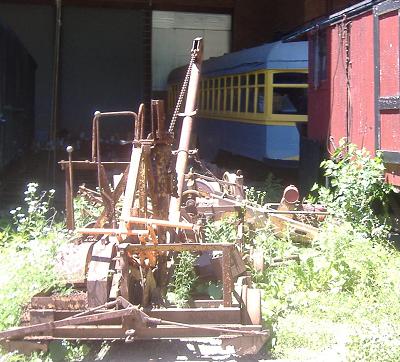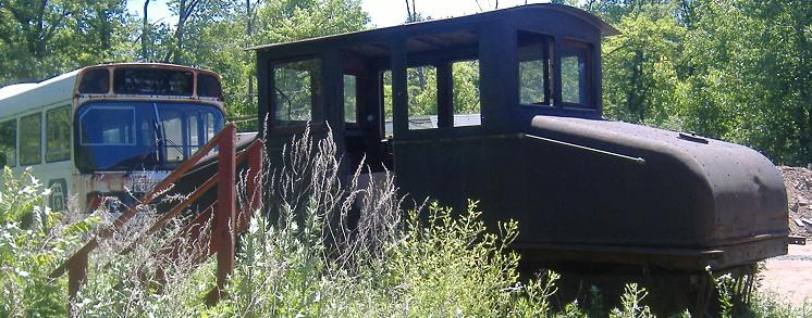 Behind the sinister-looking short locomotive is a railway-converted bus. These are past the buses and the old tow trucks.