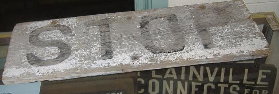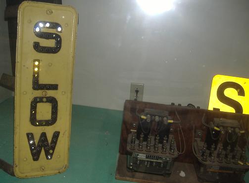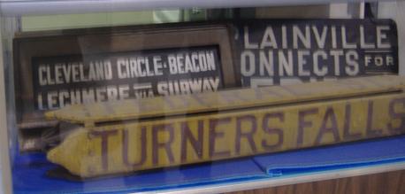 The reason I looked left first: signs! The first sign hung at a station, while the second set hung in the trolley windows (I forget, but I think the TURNERS FALLS/FEDERAL ST. sign rotated to show destination of the trolley). The third sign was trackside, dozens of years ago. I believe the circuitry relates to early railroad crossings or else to early electrical switches, but I can be corrected on this point.