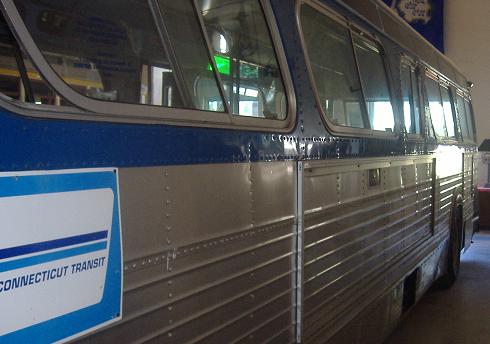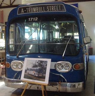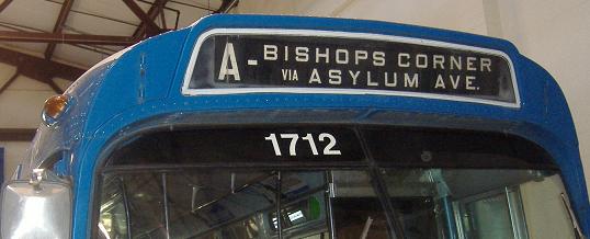 A CT Transit bus outfitted for a brief period to run on rails (for a greater bus range/operating effiency). The experiment with the previously roadgoing buses didn't last long.