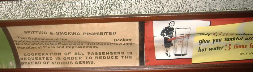 Original advertisements and notices from the 1910 CT Co. car (#1326), untouched since the car was removed from service. Enjoy the trip back to the 1950's (or thereabouts).