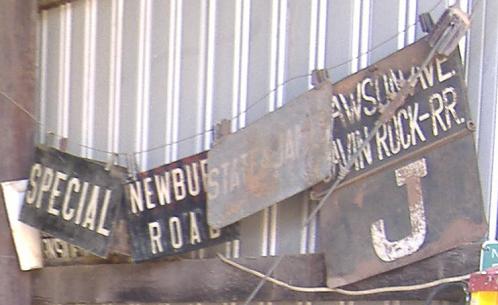 Various destination signs along the west wall of the barn, to be pepered and solted as you plese. (Anyone get that reference?)