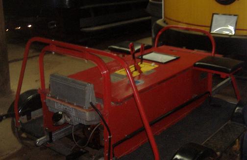 Along the front (north) of the barn. These cars are less ready to be seen than those in the museum, but still well above the state of the worst denizens on the property. (There is a lot more work to be done then there are funds and/or manpower to do it, and the Trolley Museum does accept donations and volunteers. Think about it - if you've read this much about the trolleys, maybe you have a soft spot in your heart for them.) The red thing in front of the yellow car appears to be an electronic one-man track car.