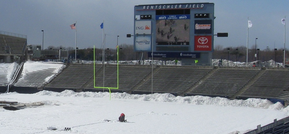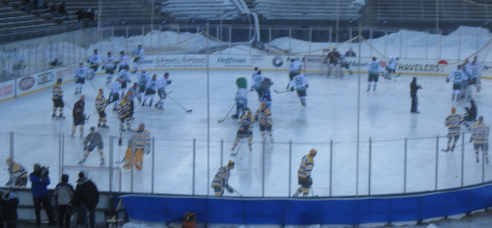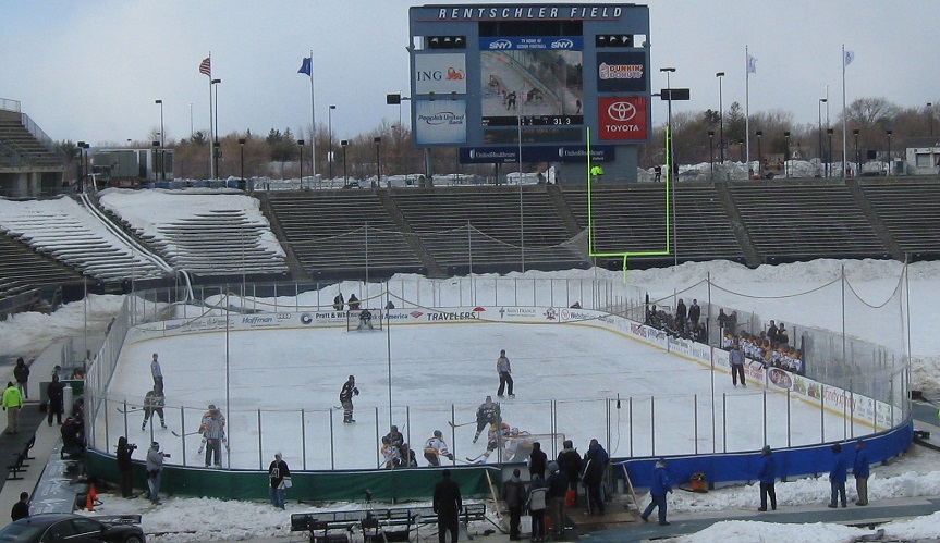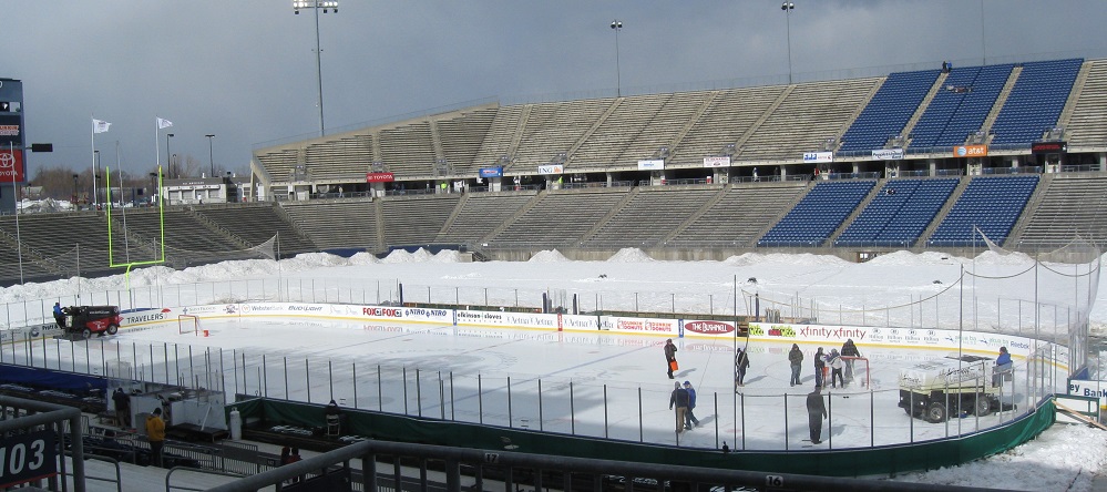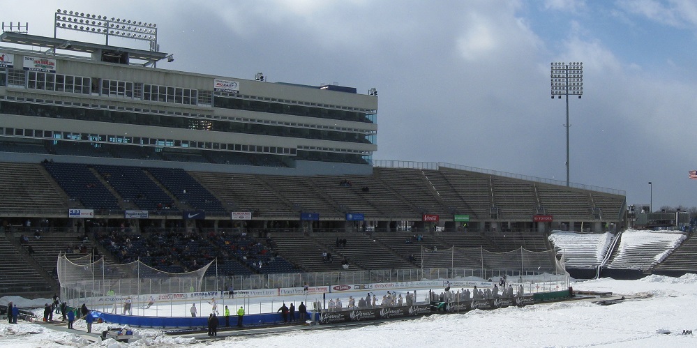 Views of the rink put together inside Rentschler Field. There was definitively no football going on in this weather.