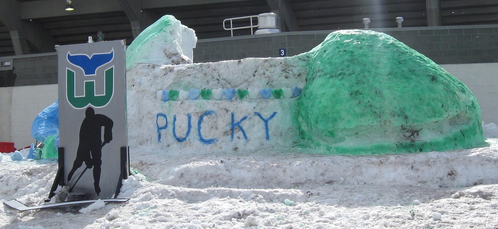 When the wind chill is less than 10 degrees, even whales freeze. Even whale mascots freeze.