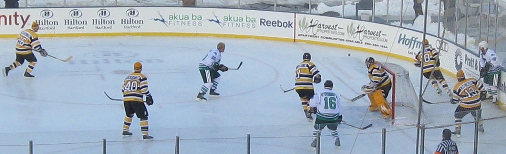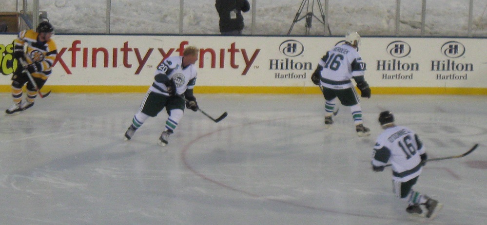 Back to the game, through the first half. I'm surprised the Bruins couldn't raise enough alumni for the game, but the celebrity fill-ins do a decent job.