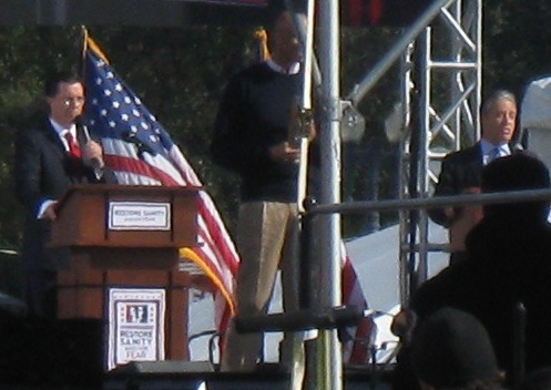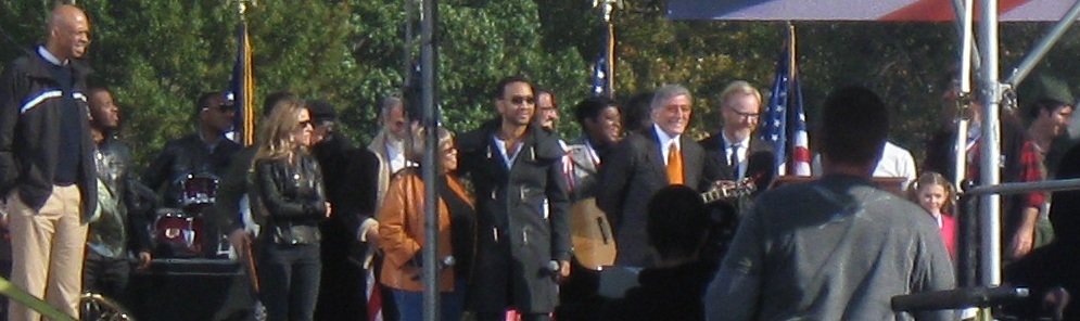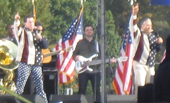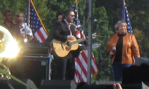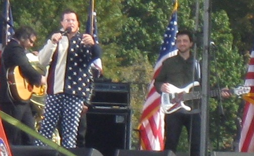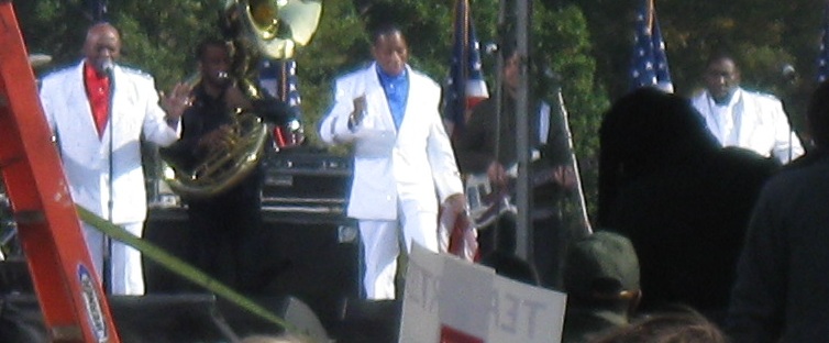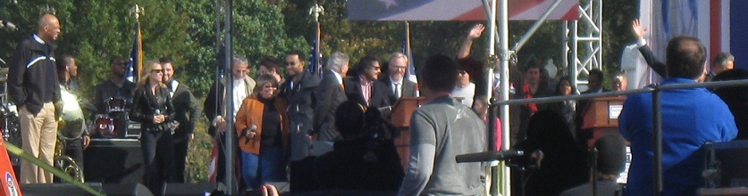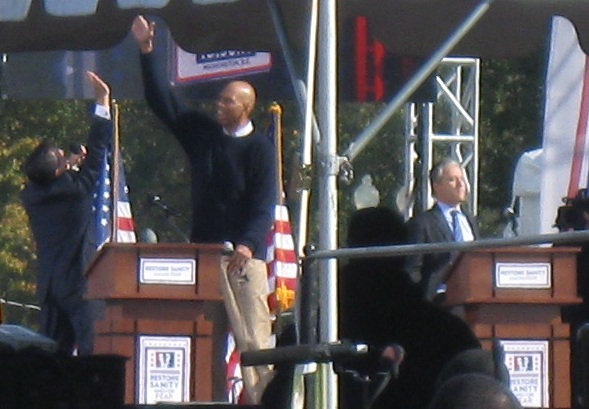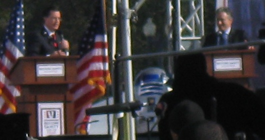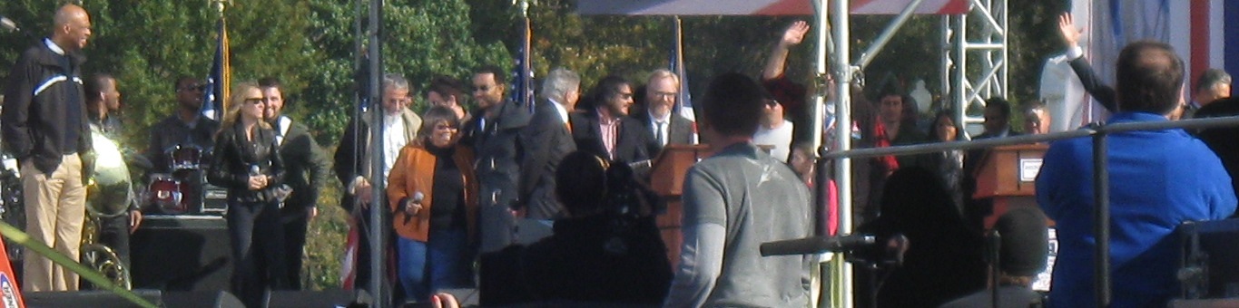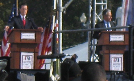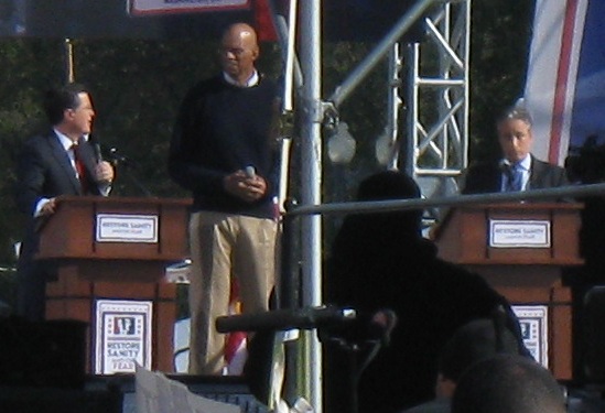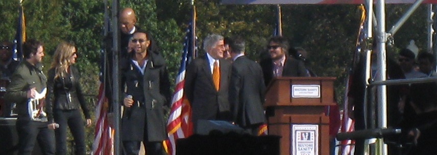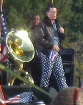 To support sanity, Jon Stewart invited up Yusuf/Cat Stevens to perform Peace Train. Yes, he is a controversial figure, but the song stands on its own merits and the mostly younger crowd had a decidedly liberal leaning to it that led to broad support for Cat. (Some people, especially conservatives, have argued that this was a political rally. I argue in return that based on all of the content I saw, even given that Jon and Stephen both lean to the left - though Stephen's character is a mock-conservative - the rally balanced praise and criticism of both sides and stayed mostly in the middle with apolitical content.)