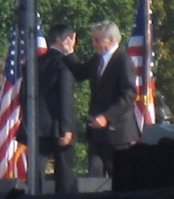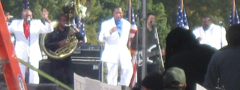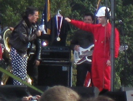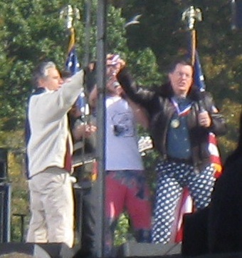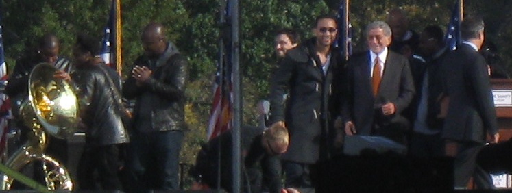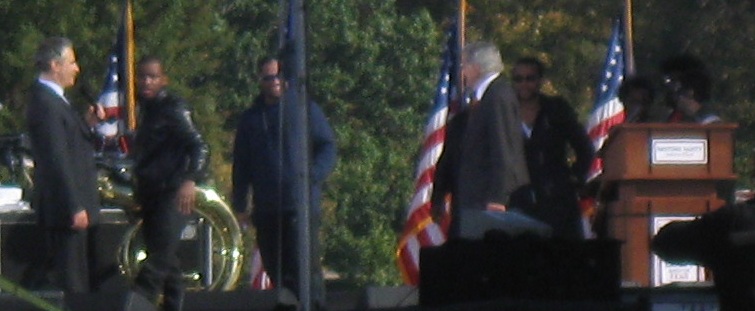 The Roots come back out, followed by everyone else from the show, including Cat and Ozzy who supposedly ran away, including even the Mythbusters who weren't a part of the rally proper. Click on the penultimate photo to expand it and see the faces a little more clearly.