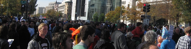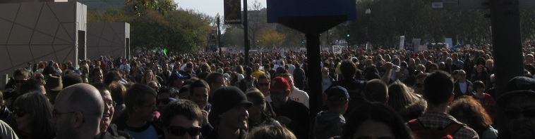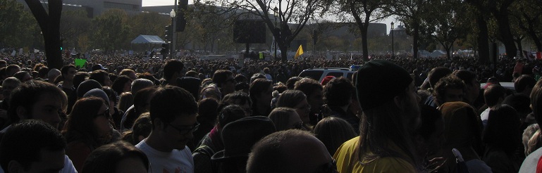 This guy probably wasn't singing along, and probably didn't catch much of the Sanity Rally. Or if he was there for the Fear March, he's actually an airborne toxic alien jellyfish leading an invasion.