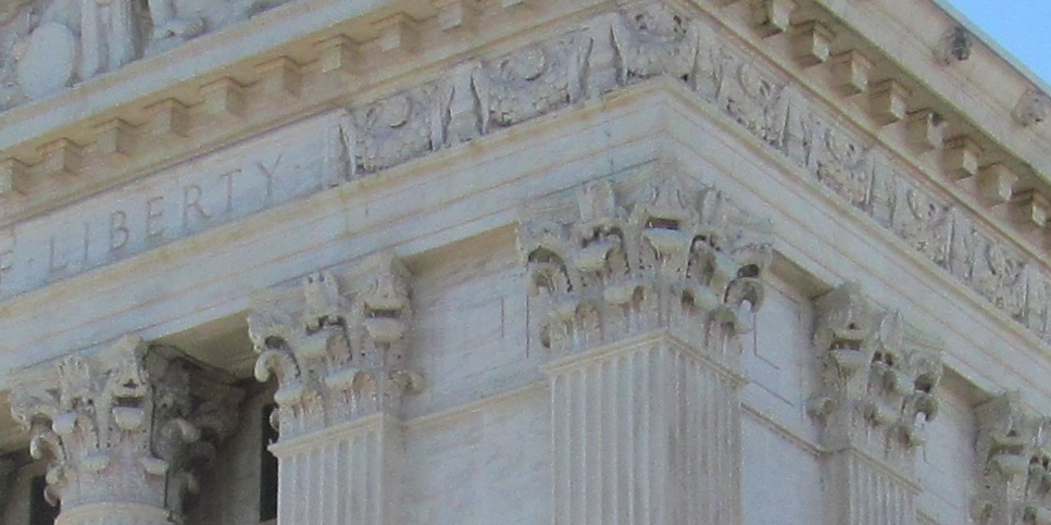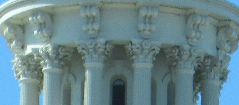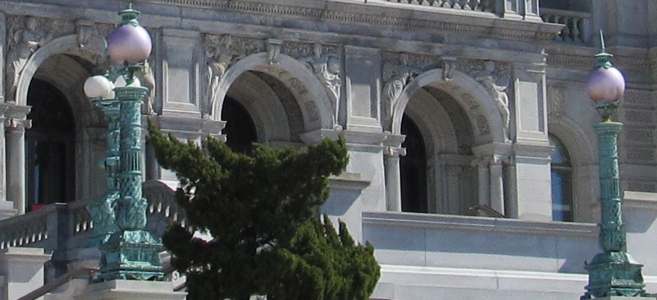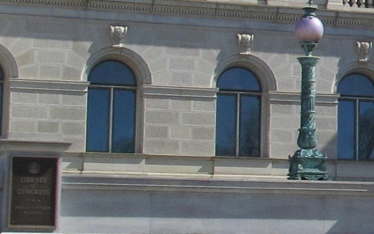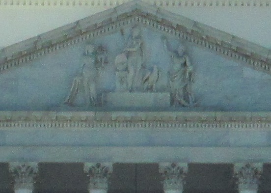 Heading east, the Supreme Court building is a block east of the Mall between 1st and 2nd Streets East. This is the lesser-viewed eastern face, whose upper frieze (or "architrave," today we both learn) was sculpted by Hermon MacNeil and features Moses, Confucius, and Solon at center.