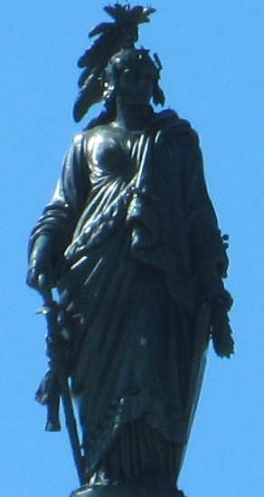 Looking progressively up the east side of the Capitol, which has been topped by the Statue of Freedom (or Freedom Triumphant in War and Peace) since 1863, the most empowered a woman could be in the 19th century.