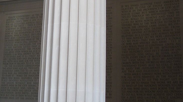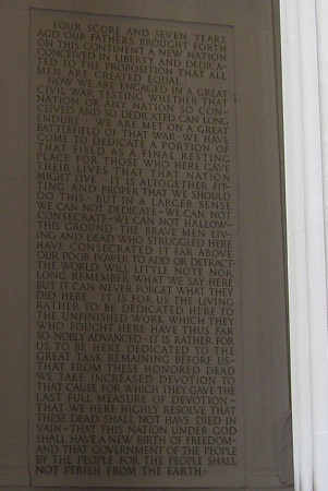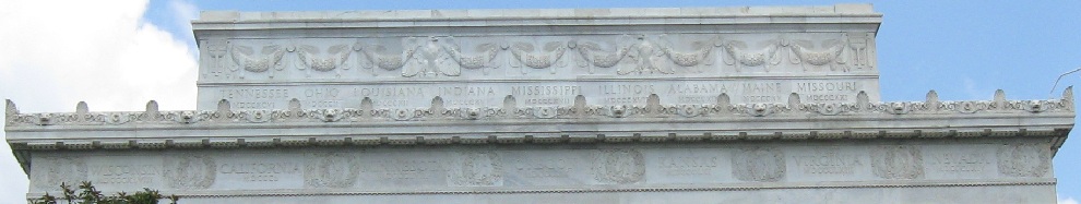 The states and their admission dates scroll around the top of the memorial but you won't find Hawaii or Alaska because it was completed in 1922. Inside are the Gettysburg Address (left wall) and Lincoln's second inaugural address (right wall).